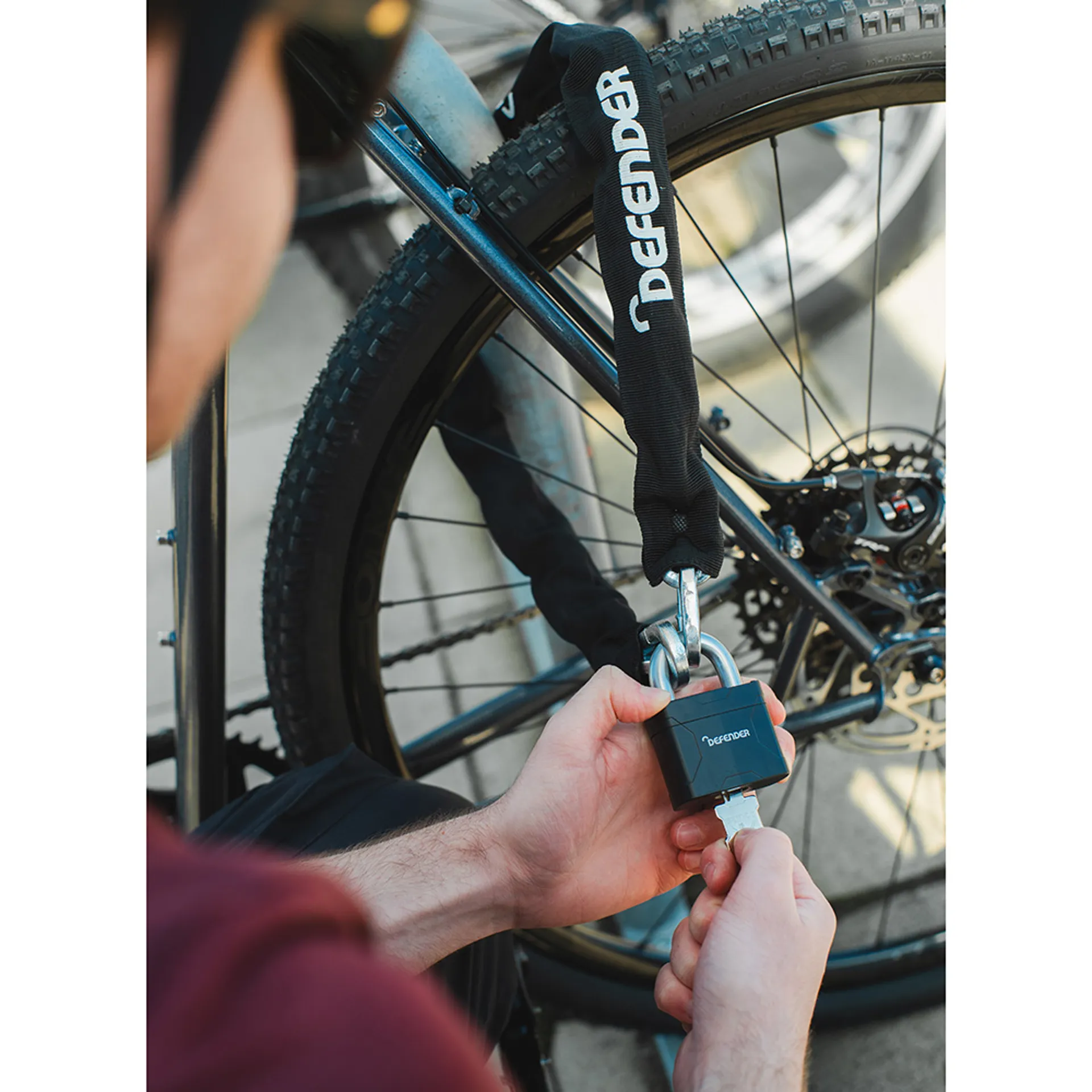 The DF CN8 50PLUS is a tough and durable padlock and chain set for bikes. A robust layer of security when locking bikes both at home and on the go. This chain bike lock features 8mm hardened steel chain links with a full locking length of 900mm, providing enough reach when locking both your bike frame and wheel to a designated bike lock stand. Built to protect your bike in low to medium risk areas and for doubling down on home bike security when paired with a ground or wall anchor.